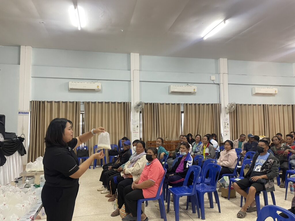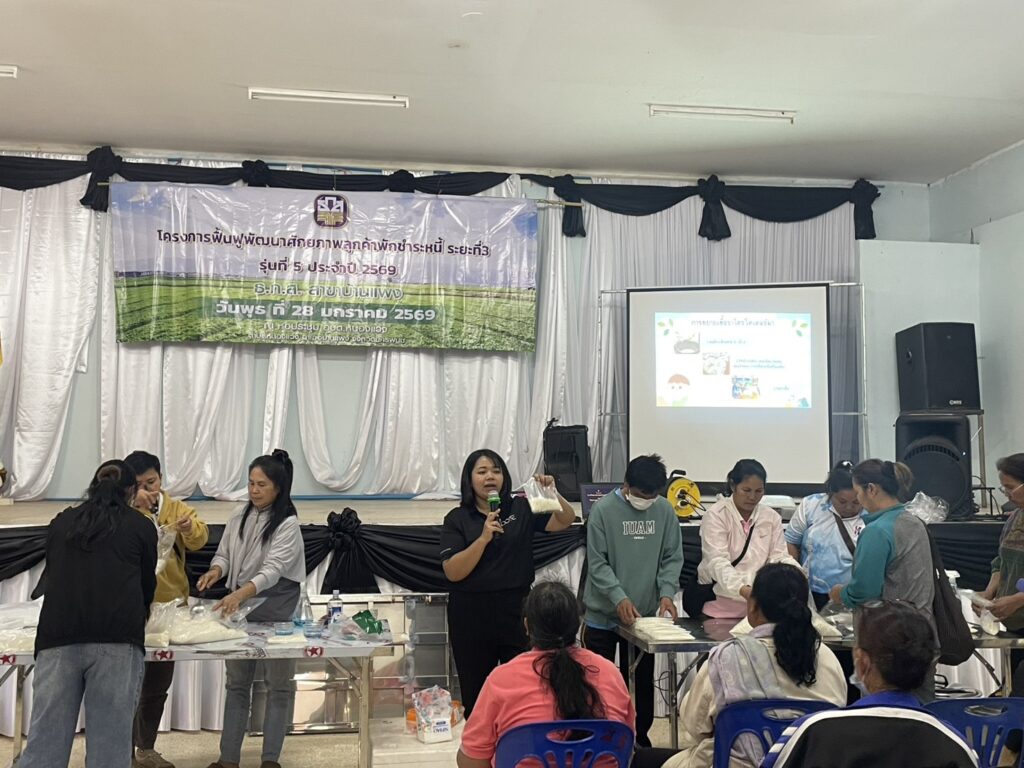 นายสักรินทร์ รัตนบุรี เกษตรอำเภอบ้านแพง เจ้าหน้าที่สำนักงานเกษตรอำเภอบ้านแพง ร่วมเป็นวิทยากรให้ความรู้ใน“โครงการฟืนฟูพัฒนาศักยภาพลูกค้าพักชำระหนี้ ระยะที่ 3 ปีบัญชี 2568” เพื่อให้ลูกค้าสามารถฟื้นฟูการประกอบอาชีพ มีรายได้สามารถชำระหนี้ได้ เมื่อสิ้นสุดโครงการ ภายใต้ “ตลาดนำ นวัตกรรมเสริม เพิ่มรายได้” เป้าหมาย 100 ราย โดยร่วยบรรยายในหัวข้อ การผลิตขยายเชื้อราไตรโคเดอร์ม่า ณ หอประชุมองค์การบริหารส่วนตำบลหนองแวง อำเภอบ้านแพง จังหวัดนครพนม จังหวัดนครพนม