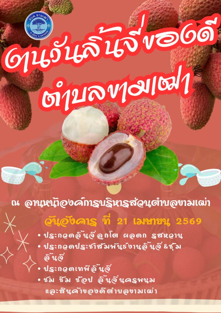 วันที่ 1 เมษายน 2569 เวลา 10.00 น. นายวีรเดช ซามาตร นายกองค์การบริหารส่วนตำบลขามเฒ่าพร้อมเจ้าหน้า เข้าพบนางวิไล อุตส่าห์ เกษตรจังหวัดนครพนม เพื่อเชิญร่วมงานพร้อมประชาสัมพันธ์งาน วันลิ้นจี่ ของดีตำบลขามเฒ่า ในวันอังคาร ที่ 21 เมษายน 2569 เวลา 08.00 เป็นต้นไป ณ องค์การบริหารส่วนตำบลขามเฒ่า