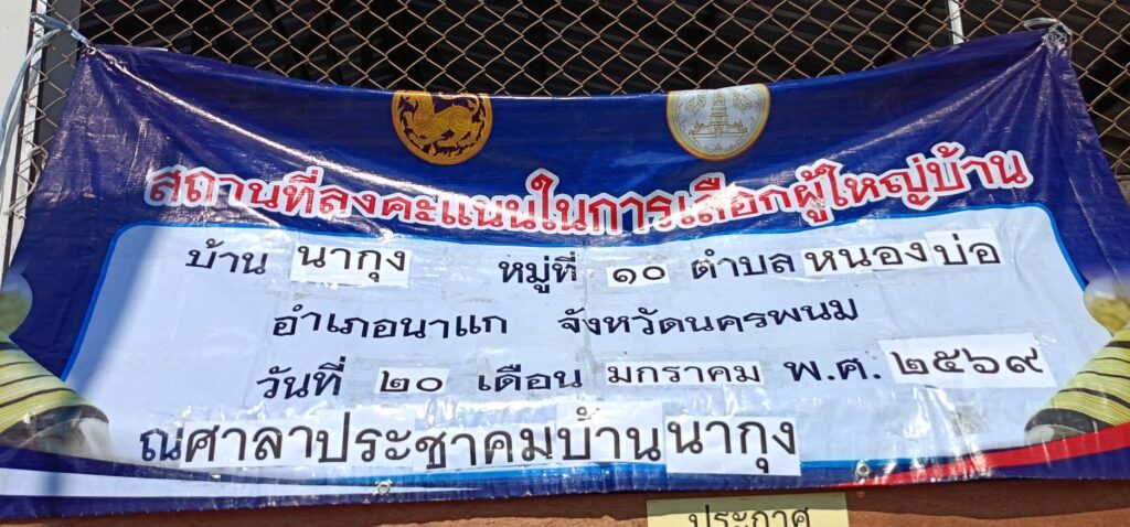 วันที่ 20 มกราคม 2569 เวลา 08.00 น. เกษตรอำเภอนาแก มอบหมายให้นายสนธยา โสนาคู นักวิชาการส่งเสริมการเกษตรปฏิบัติการ ร่วมเป็นคณะกรรมการประจำสถานที่เลือกผู้ใหญ่บ้าน แทนท่านที่เกษียณอายุ ณ ศาลาประชาคม บ้านนากุง หมู่ที่ 10 ตำบลหนองบ่อ อำเภอนาแก จังหวัดนครพนม