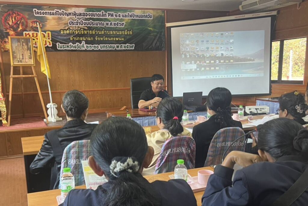 วันที่ 23 มกราคม 2569 เวลา 09.00 น. เกษตรอำเภอนาแก มอบหมายให้นายสนธยา โสนาคู นักวิชาการส่งเสริมการเกษตรปฏิบัติการ ร่วมเป็นวิทยากรในโครงการแก้ไขปัญหาฝุ่นละอองขนาดเล็ก PM 2.5 และไฟป่าหมอกควัน ประจำปีงบประมาณ พ.ศ. 2569 หัวข้อมาตรการป้องกันและแก้ไขปัยหาการเผาในพื้นที่เกษตรกรรม และการส่งเสริมการไถกลบตอซัง ทั้งนี้ยังประชาสัมพันธ์ประกาศกระทรวงเกษตรและสหกรณ์ เรื่อง มาตรการบริหารจัดการป้องกันและแก้ไขปัญหาฝุ่นละอองขนาดเล็กไม่เกิน 2.5 ไมครอน (PM 2.5) ภาคการเกษตร (ฉบับที่ 2) พ.ศ. 2568 ณ ห้องประชุมองค์การบริหารส่วนตำบลหนองสังข์ อำเภอนาแก จังหวัดนครพนม