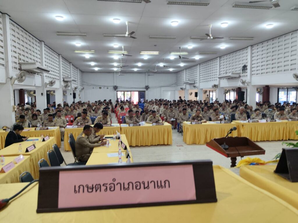 วันที่ 2 กุมภาพันธ์ 2569 เวลา 09.00 น. นายบรรจง ชุ่มเสนา นักวิชาการส่งเสริมการเกษตรชำนาญการ รักษาราชการแทนเกษตรอำเภอนาแก ร่วมประชุมประจำเดือนกำนันผู้ใหญ่บ้าน ผู้ช่วยฯ แพทย์ฯ สารวัตร ประจำเดือน กุมภาพันธ์ 2569 โดยแจ้งเรื่อง ประกาศกระทรวงเกษตรและสหกรณ์ เรื่องมาตรการบริหารจัดการป้องกันและแก้ไขปัญหาฝุ่นละอองขนาดเล็กไม่เกิน 2.5 ไมครอน (PM2.5) ภาคการเกษตร (ฉบับที่ 2) การประชาสัมพันธ์การแจ้งขึ้น/ปรับปรุงทะเบียนเกษตรกรผู้ปลูกพืชฤดูแล้ง การต่อทะเบียนกลุ่มวิสาหกิจชุมชนและเครือข่ายวิสาหกิจชุมชน และความก้าวหน้าการดำเนินการช่วยเหลือเกษตรกรผู้ประสบอุทกภัย ด้านพืช ซึ่งได้รับการโอนเงินช่วยเหลือแล้ว เกษตรกรที่ยังไม่ได้รับการช่วยเหลือ อาจจะมีปัญหาในด้านข้อมูลที่ไม่ถูกต้อง ขอให้เร่งติดต่อสำนักงานเกษตรอำเภอเพื่อตรวจสอบแก้ไขข้อมูลให้ถูกต้อง ณ หอประชุมอำเภอนาแก