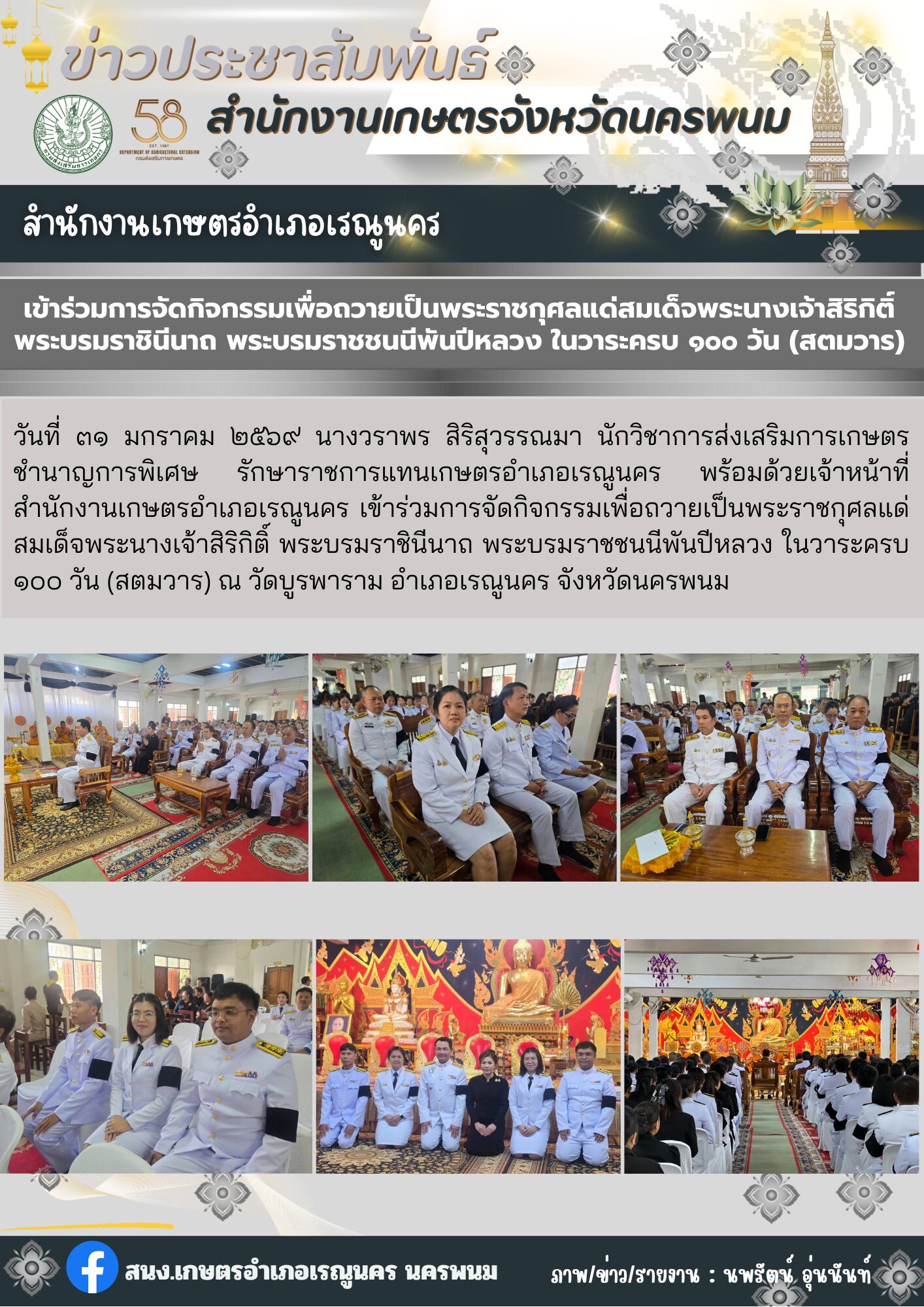 เข้าร่วมการจัดกิจกรรมเพื่อถวายเป็นพระราชกุศลแด่สมเด็จพระนางเจ้าสิริกิติ์พระบรมราชินีนาถ พระบรมราชชนนีพันปีหลวง ในวาระครบ 100 วัน (สตมวาร)อ่านต่อ
