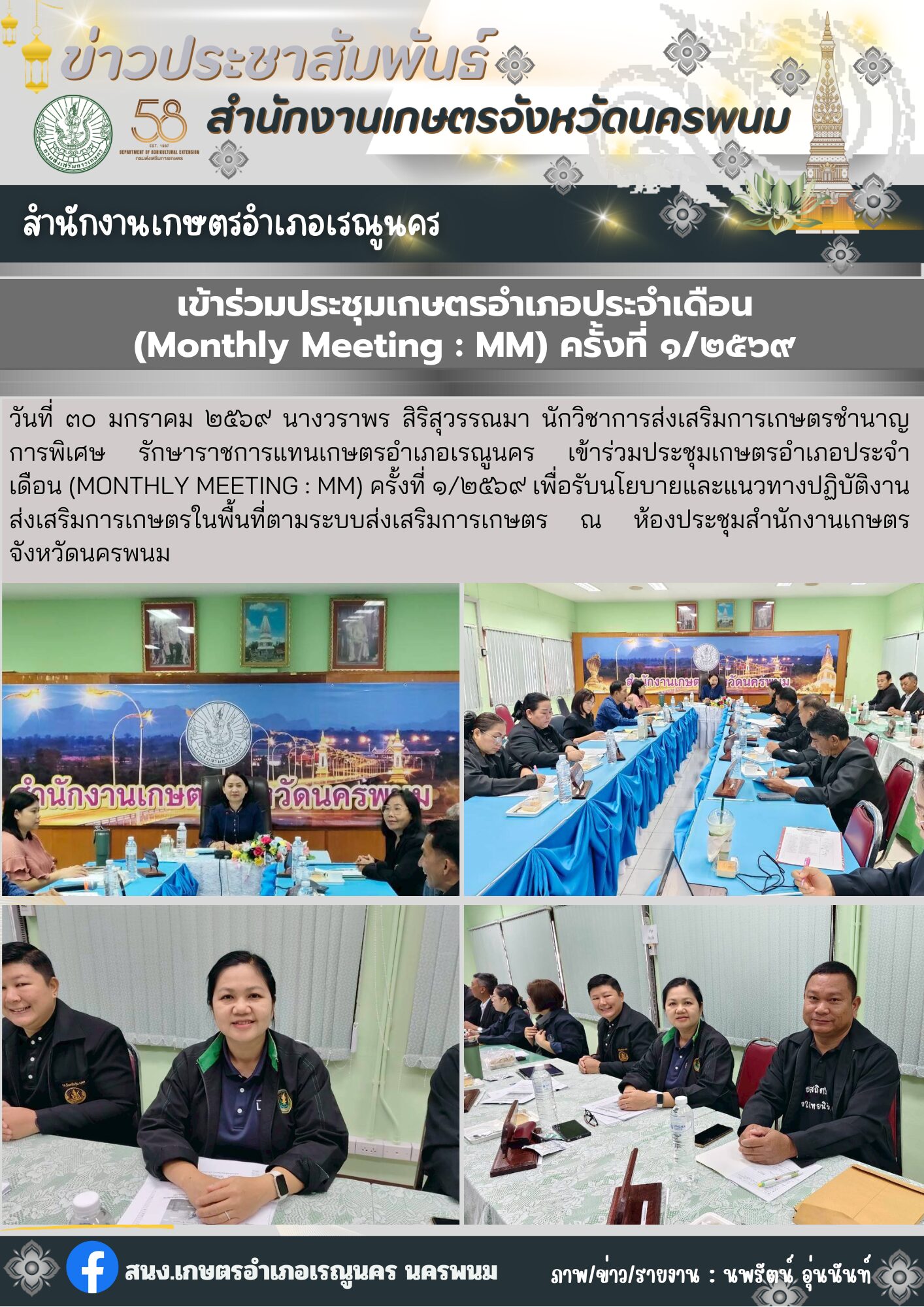 ร่วมประชุมคณะทำงานพัฒนาคุณภาพข้อมูลปริมาณการผลิตสินค้าเกษตรด้านพืชจังหวัดนครพนม ครั้งที่ 2/2568อ่านต่อ