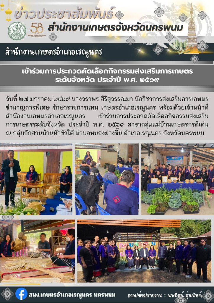 เข้าร่วมการประกวดคัดเลือกกิจกรรมส่งเสริมการเกษตรระดับจังหวัด ประจำปี พ.ศ. 2569By admin_renu / 28 มกราคม 2026