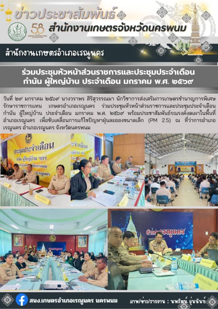 ร่วมประชุมหัวหน้าส่วนราชการและประชุมประจำเดือน กำนัน ผู้ใหญ่บ้าน ประจำเดือน มกราคม พ.ศ. 2569By admin_renu / 30 มกราคม 2026