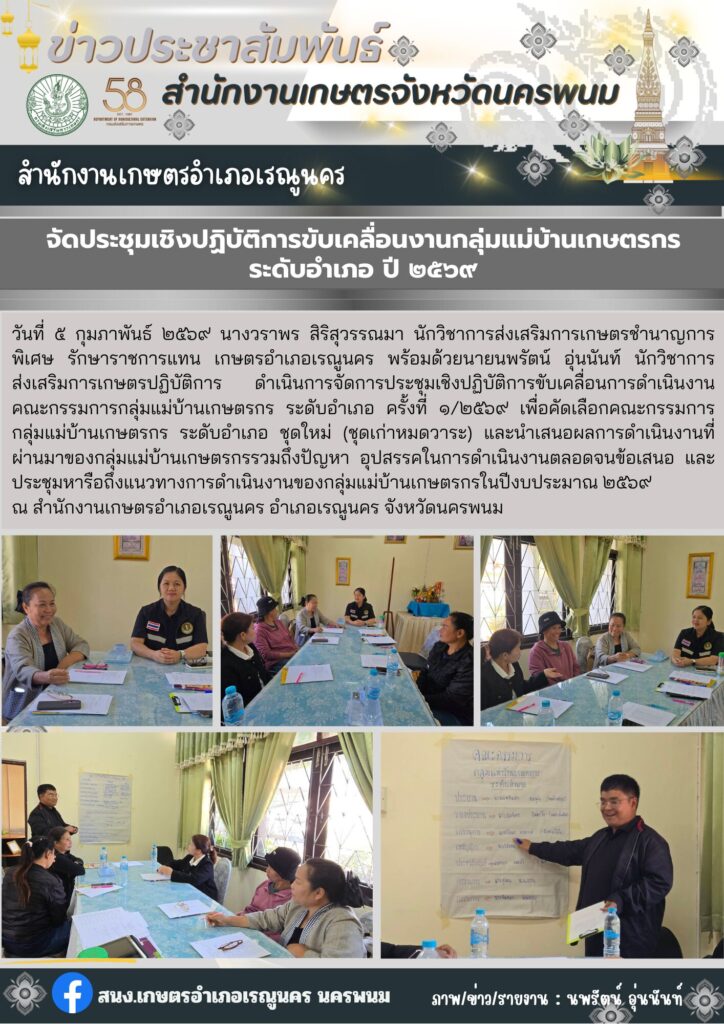 จัดประชุมเชิงปฏิบัติการขับเคลื่อนงานกลุ่มแม่บ้านเกษตรกรระดับอำเภอ ปี 2569