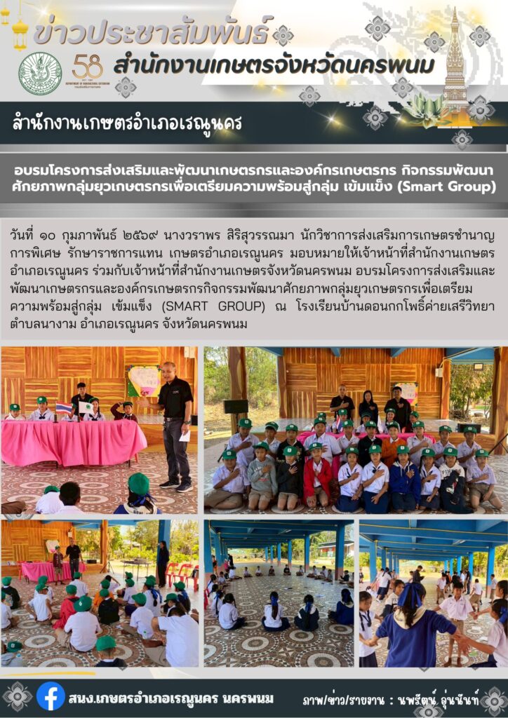 อบรมโครงการส่งเสริมและพัฒนาเกษตรกรและองค์กรเกษตร กิจกรรมพัฒนาศักยภาพกลุ่มยุวเกษตรกรเพื่อเตรียมความพร้อมสู่กลุ่มเข้มแข็ง (Smart Group)