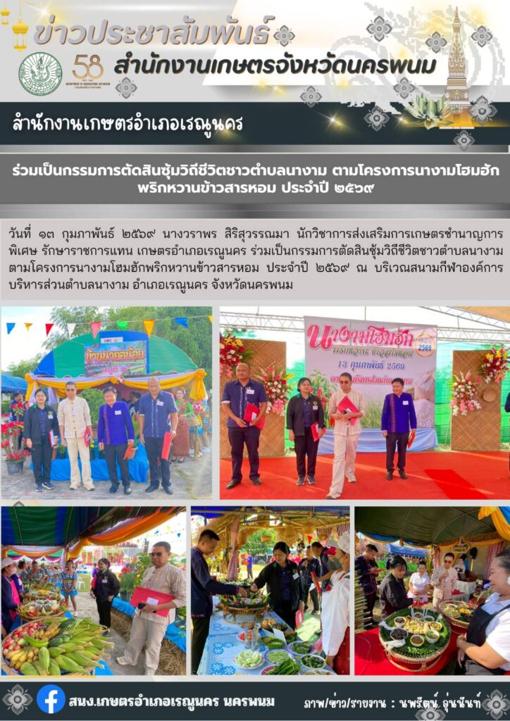 ร่วมเป็นกรรมการตัดสินซุ้มวิถีชีวิตชาวตำบลนางาม ตามโครงการนางามโฮมฮักพริกหวานข้าวสารหอม ประจำปี 2569By admin_renu / 17 กุมภาพันธ์ 2026