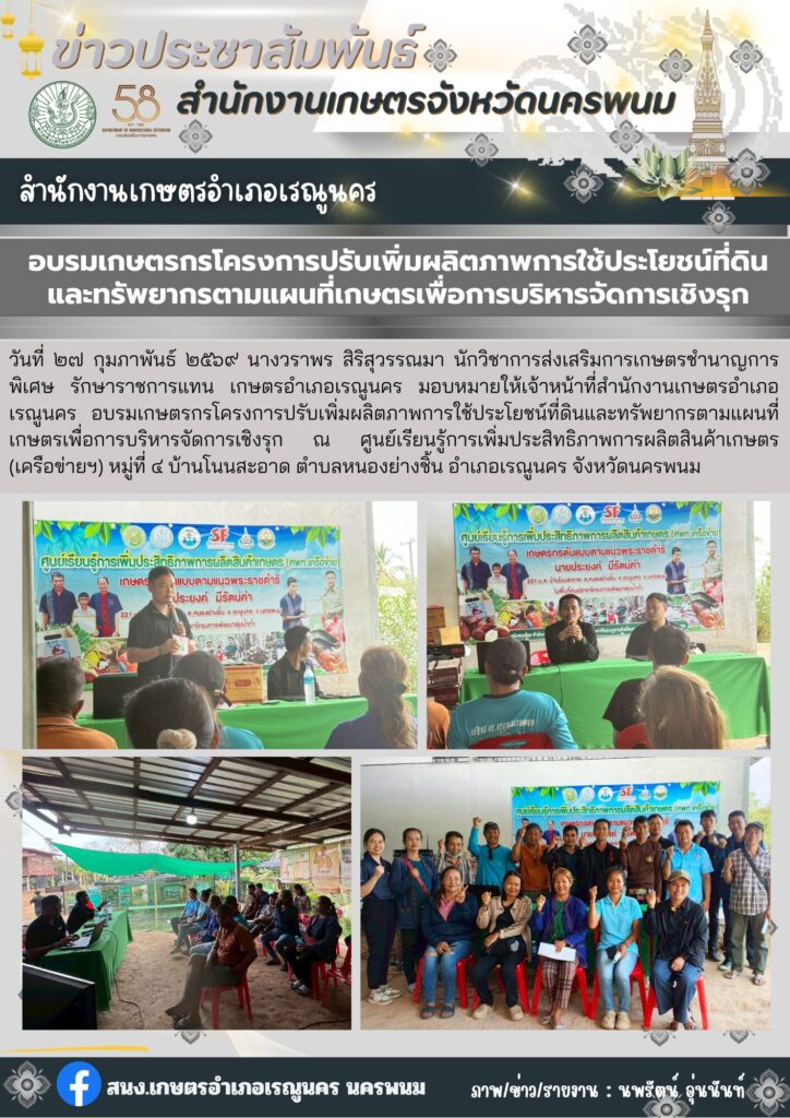 อบรมเกษตรกรโครงการปรับเพิ่มผลิตภาพการใช้ประโยชน์ที่ดินและทรัพยากรตามแผนที่เกษตรเพื่อการบริหารจัดการเชิงรุก