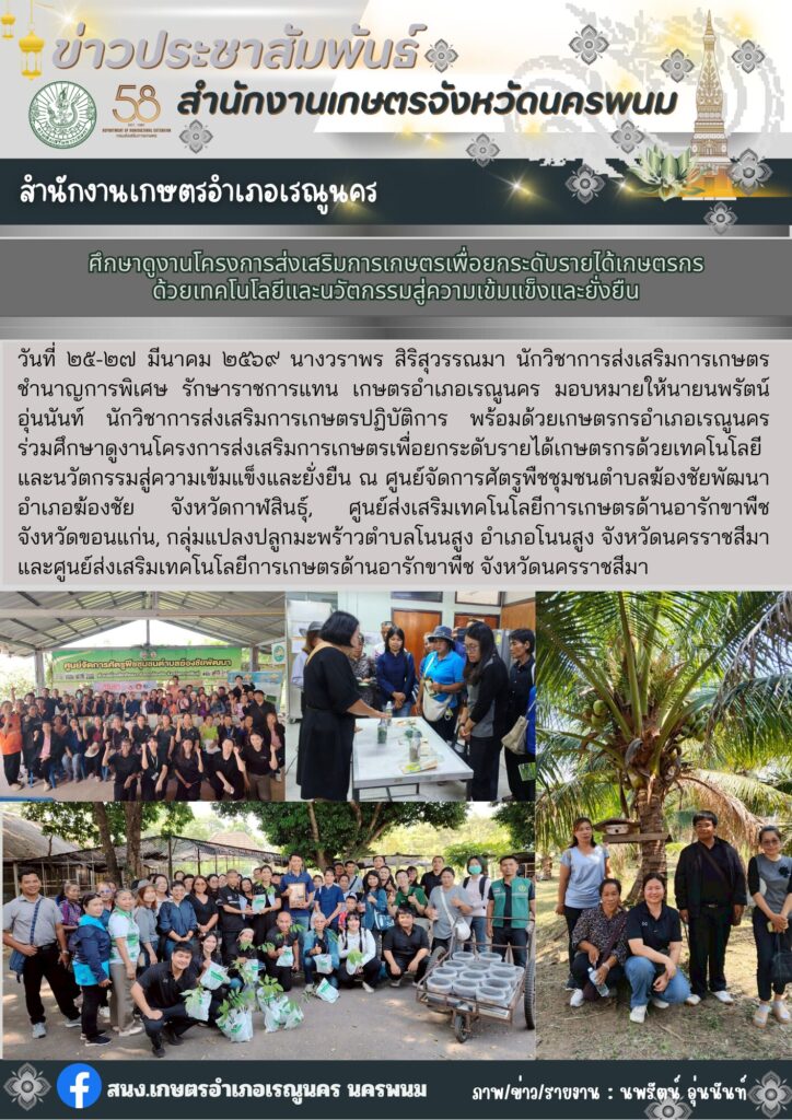 ศึกษาดูงานโครงการส่งเสริมการเกษตรเพื่อยกระดับรายได้เกษตรกรด้วยเทคโนโลยีและนวัตกรรมสู่ความเข้มแข็งและยั่งยืนBy admin_renu / 31 มีนาคม 2026