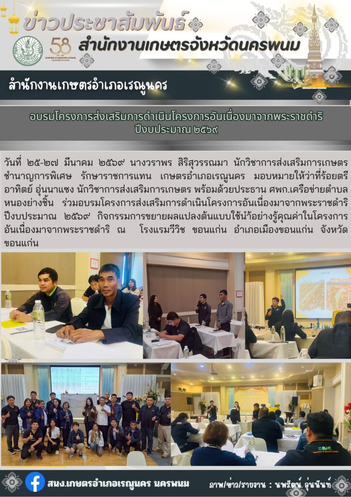 อบรมโครงการส่งเสริมการดำเนินโครงการอันเนื่องมาจากพระราชดำริ ปีงบประมาณ 2569By admin_renu / 31 มีนาคม 2026