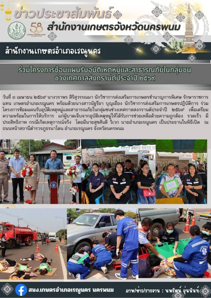 ร่วมโครงการซ้อมแผนรับอุบัติเหตุหมู่และสาธารณภัยในกลุ่มชน ช่วงเทศกาลสงกรารต์ประจำปี 2569By admin_renu / 7 เมษายน 2026