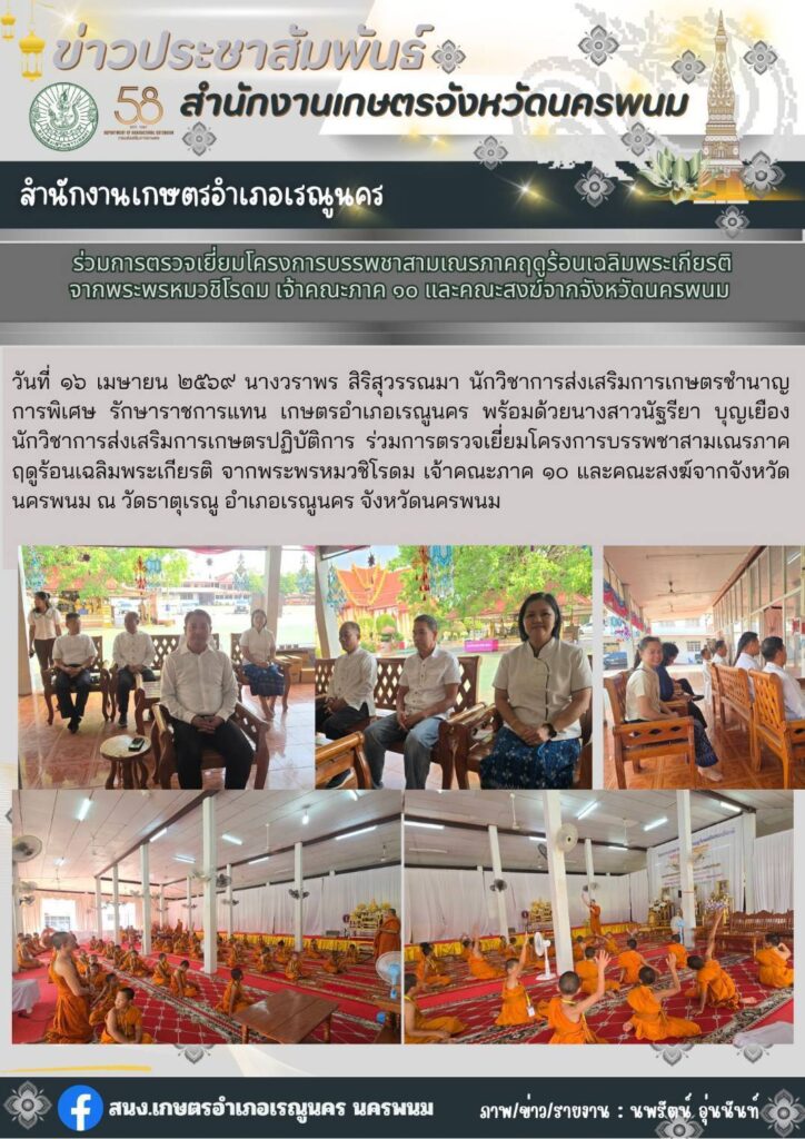 ร่วมการตรวจเยี่ยมโครงการบรรพชาสามเณรภาคฤดูร้อนเฉลิมพระเกียรติจากพระพรหมวชิโรดม เจ้าคณะภาค 10 และคณะสงฆ์จากจังหวัดนครพนมBy admin_renu / 17 เมษายน 2026