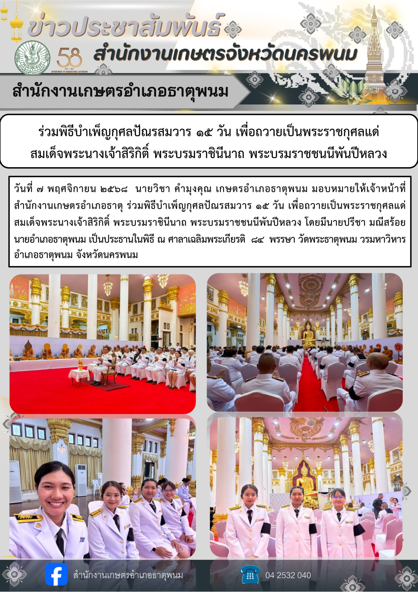 ร่วมพิธีบำเพ็ญกุศลปัณสมวาร 15 วัน เพื่อถวายเป็นพระราชกุศลแด่สมเด็จพระนางเจ้าสิริกิติ์ พระบรมราชินีนาถ พระบรมราชชนีพันปีหลวงอ่านต่อ