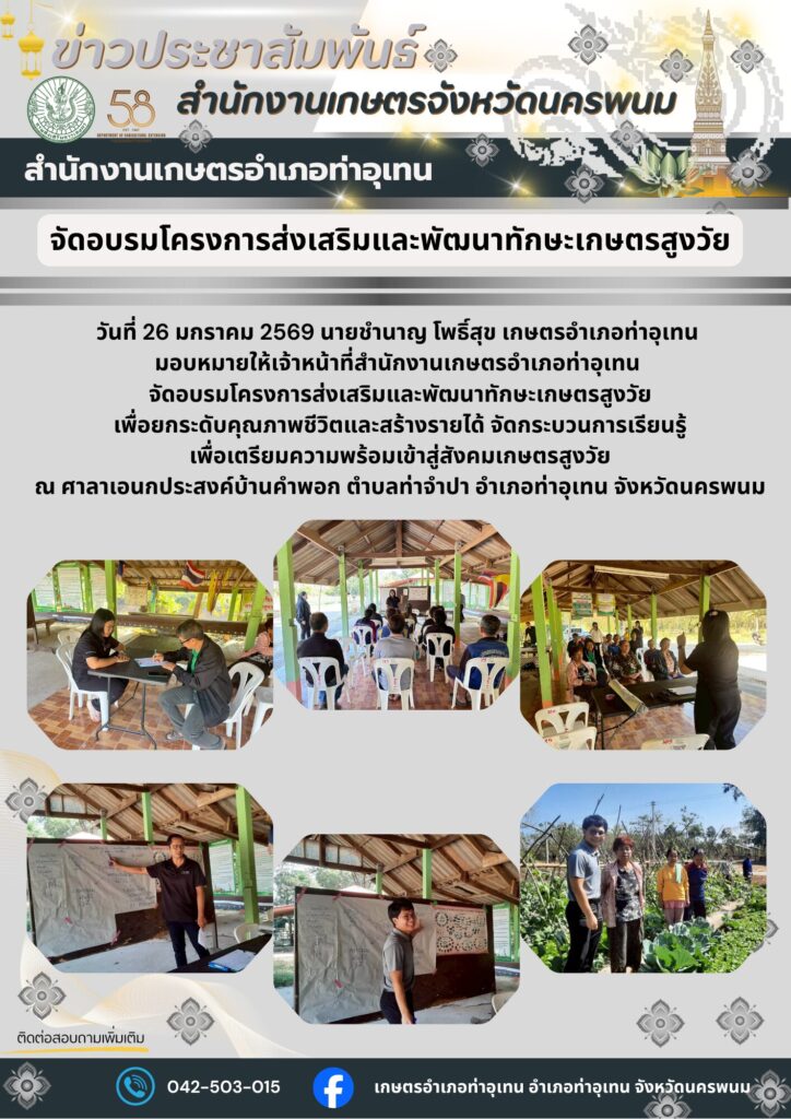 จัดอบรมโครงการส่งเสริมและพัฒนาทักษะเกษตรสูงวัย