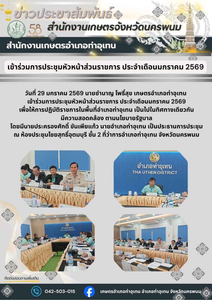 เข้าร่วมการประชุมหัวหน้าส่วนราชการ ประจำเดือนมกราคม 2569
