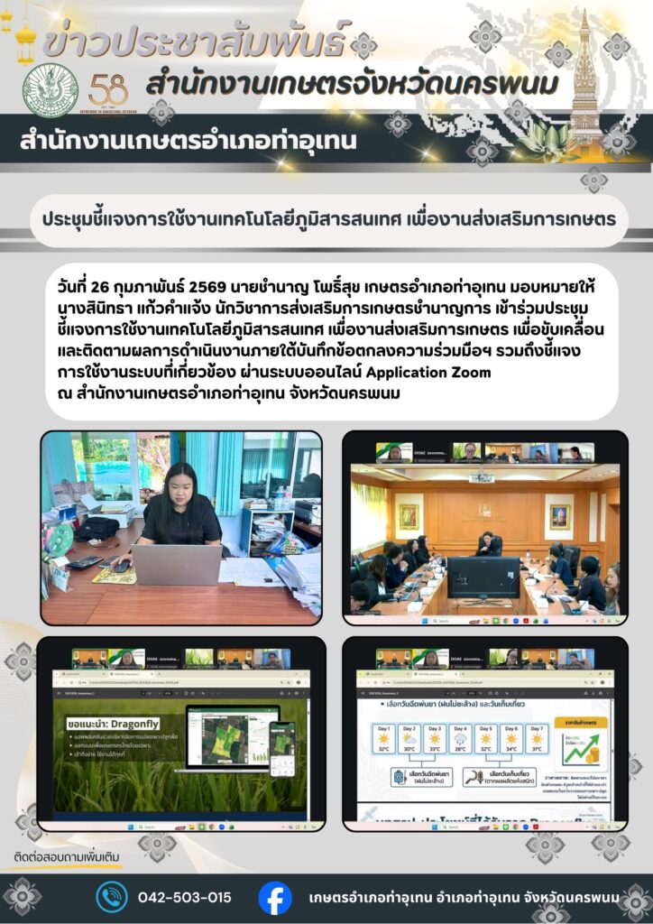ประชุมชี้แจงการใช้งานเทคโนโลยีภูมิสารสนเทศ เพื่องานส่งเสริมการเกษตรBy admin_thauthen / 26 กุมภาพันธ์ 2026