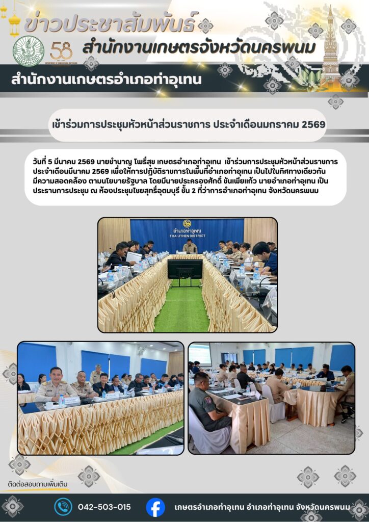 เข้าร่วมการประชุมหัวหน้าส่วนราชการ ประจำเดือนมกราคม 2569