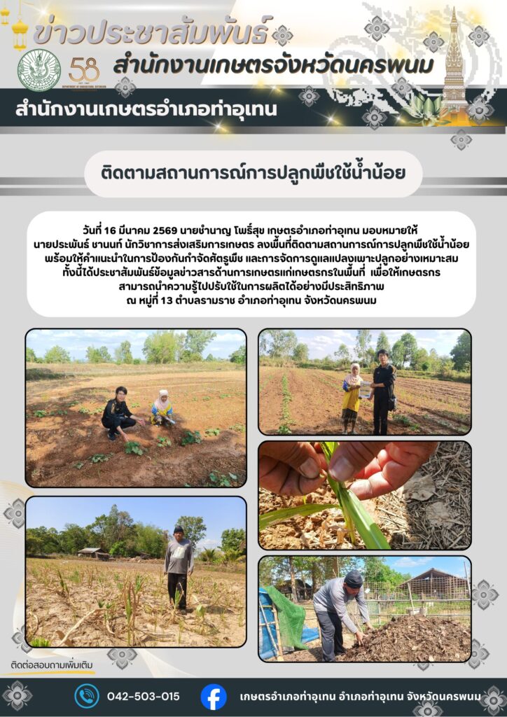 ติดตามสถานการณ์การปลูกพืชใช้น้ำน้อยBy admin_thauthen / 16 มีนาคม 2026 ติดตามสถานการณ์การปลูกพืชใช้น้ำน้อย